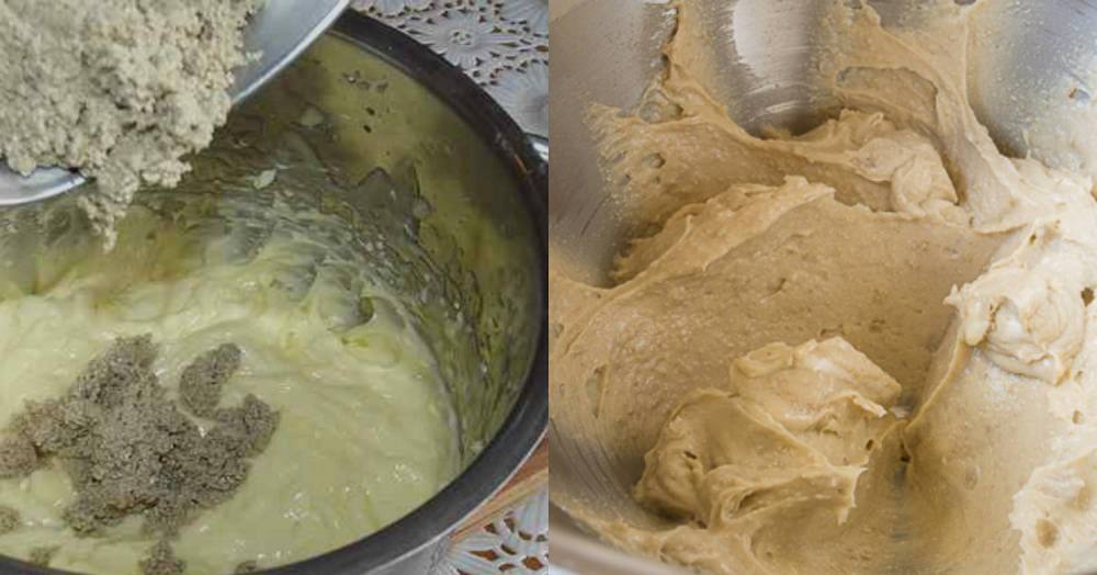 Cand incepe sa fiarba, adaugam budinca si amestecam continuu pana obtinem o crema groasa. O luam de pe foc si o lasam sa se raceasca. Adaugam apoi untul la temperatura camerei si amestecam bine. La final, adaugam halvaua maruntita si impartim crema obtinuta in 3.