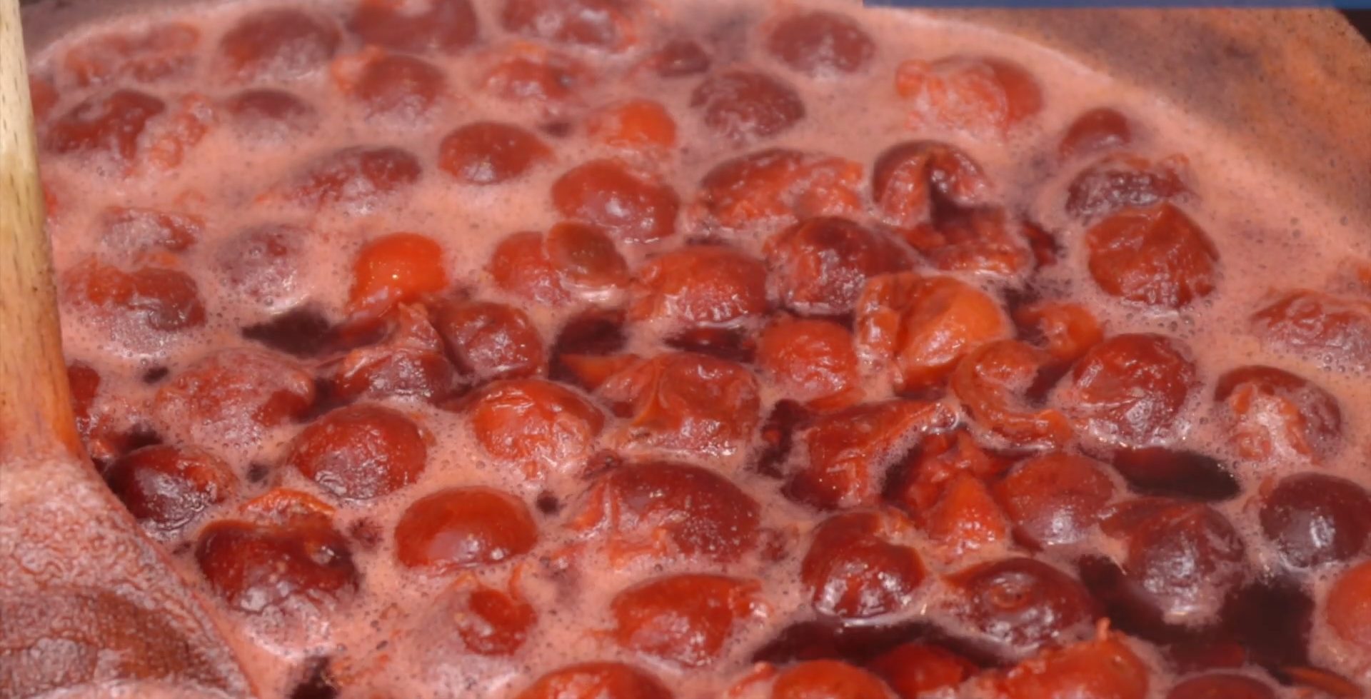 Pentru sos, punem la fiert vișinele, turnând apă peste ele cât să se acopere. Adăugăm zahărul, scorțișoara, nucșoara și fierbem totul împreună.