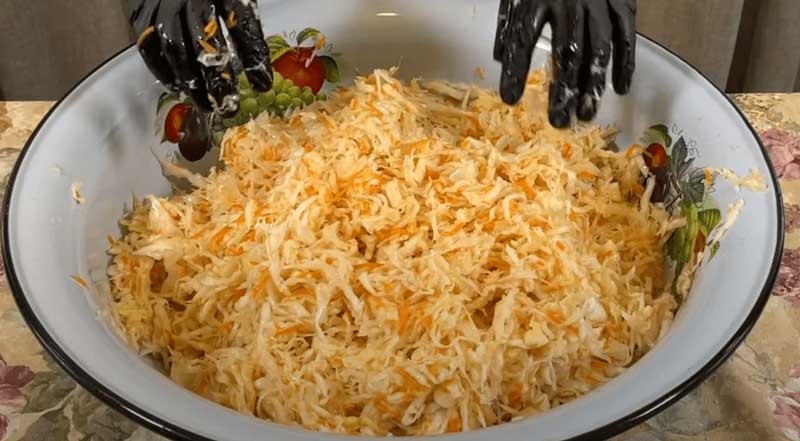 Au trecut trei zile, sucul a fost eliberat, transfer varza din găleată în borcan și o amestec bine, eliminând astfel amărăciunea, veti observa ca iese un miros neplăcut.