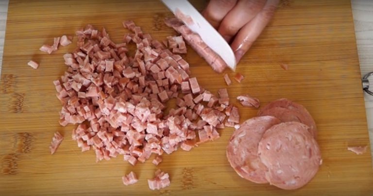 2. Tăiem cârnații și ceapa cubulețe. Cartoful și cașcavalul le dăm prin răzătoare. Amestecăm foarte bine aceste ingrediente, adăugăm 1 ou și condimentăm cu sare și piper.