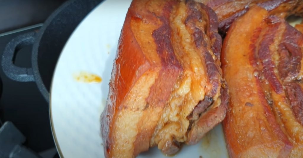 Secretul acestui piept de porc stă în marinada cu bere blondă și condimente, care face carnea suculentă și plină de arome. Prăjirea la început îi conferă o crustă aurie și crocantă, iar fierberea ulterioară în sosul de soia adâncește gustul, transformându-l într-o delicatesă care va cuceri orice gurmand. Fie că îl serviți alături de garnituri simple sau preparate mai elaborate, acest piept de porc va deveni cu siguranță un favorit al mesei.