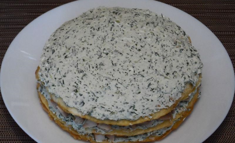 4. Tapetăm o clătităn cu o treime din crema obținută.