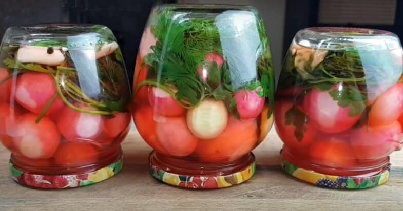 Cu marinada fierbinte umplu borcanele cu ridichi până sus. Le închid ermetic cu capace, le întorc cu susul în jos și le las așa până se răcesc complet. Poftă bună!