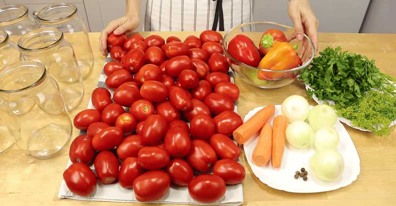 - Roșii coapte (cel mai bine este să alegeți cu coaja subțire, sa fie tari și pulpă suculentă si mai mici)