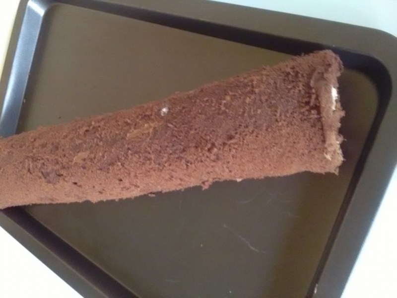 Dupa ce s-a copt, il punem, cu tot cu hartie de copt, pe o carpa umeda si-l rulam, cat inca este fierbinte. Dupa ce s-a racit complet, indepartam hartia de copt de pe aluat.