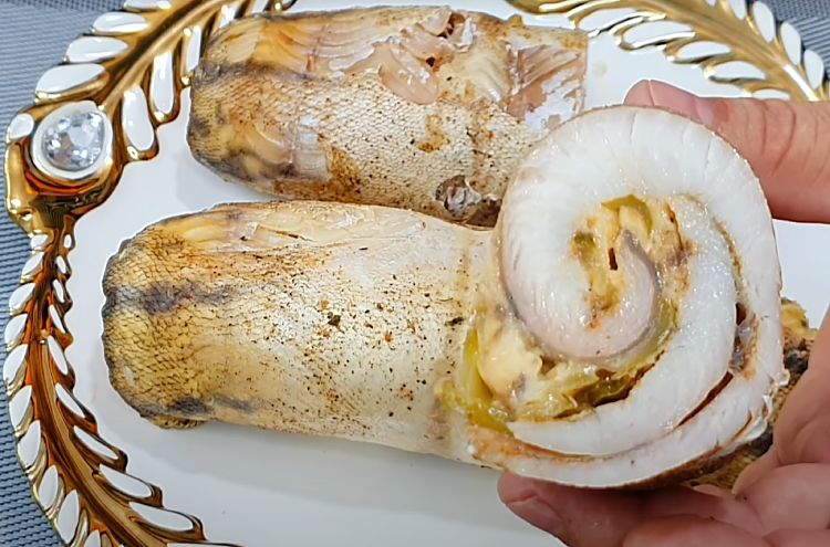 Transferați ruloul într-o formă de copt și preîncălziți cuptorul la 180 de grade Celsius. Coaceți ruloul în cuptorul preîncălzit timp de 35 de minute sau până când peștele devine fraged și începe să se rumenească.