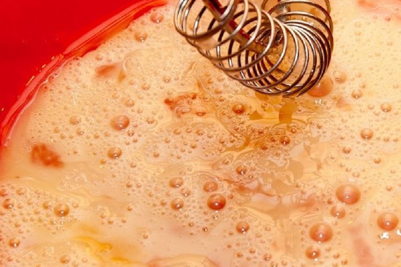 4. Într-un bol, batem ouăle cu ajutorul unui mixer.