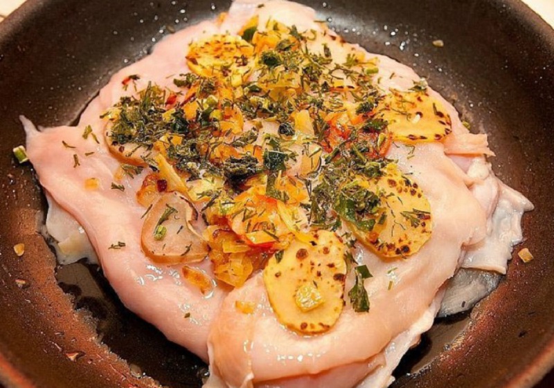 După ce preparatul este gata, se asezonează cu pătrunjel verde tocat, se amestecă și se mai lasă 2 minute pe foc.