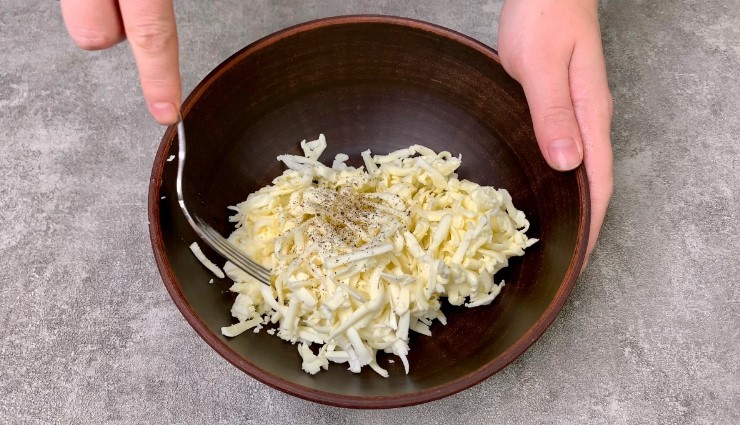 Pentru a treia umplutură, baza este aceeași – cascaval și unt. De asemenea, nu uitați să adăugați ceva piper negru măcinat.