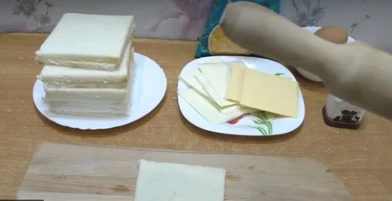 Pentru început, îndepărtăm coaja de pe feliile de pâine.