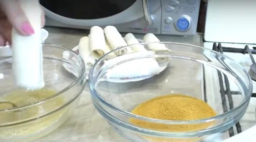 4. Dăm fiecare ruloul prin ou bătut și prin pesmeți.