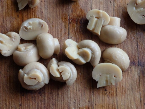 2. Cu ajutorul unui cuțit, tăiem ciupercile cubulețe.
