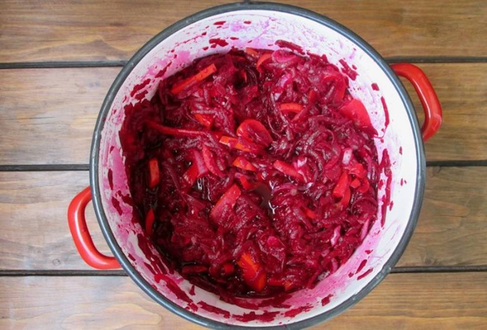 Scoate apoi borcanele din oala si pune-le pe un prosop de bucatarie cu gura in jos. Lasa borcanele sa se raceasca. Dupa ce borcanele cu salata de sfecla si ardei se racesc, depoziteaza-le in camara.
