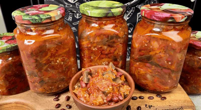 Vinete cu fasole pentru iarna : fac mai multe borcane, le pastrez in dulap si le mananc toata iarna, ca aperitiv, salata si garnitura calda! Un borcan cu o astfel de salata salvează întotdeauna! Aceasta este o salată, un aperitiv și chiar o garnitură fierbinte.