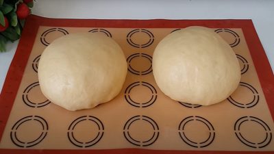 Puneți aluatul finit într-un bol și acoperiți-l cu folie alimentară. Lăsați-l să dospească aproximativ 30 de minute. După ce aluatul a dospit, împărțiți-l în două bile egale și acoperiți-le din nou cu folie alimentară. Lăsați-le să stea 10 minute.