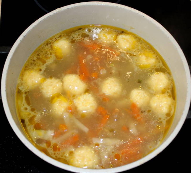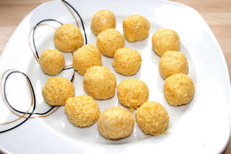 Cu mainile umede, formam galuste de branza pe care le punem apoi in supa clocotita.