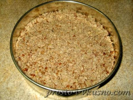 Punem peste tavă o farfurie mare și răsturnăm cu mișcare rapidă tortul. Îndepărtăm hârtia de cop.