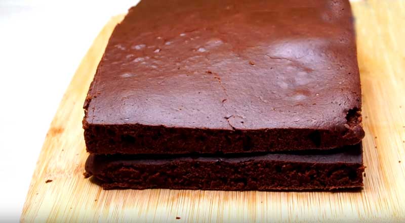 Coaceți în cuptor la 180 de grade Celsius timp de 15-20 de minute – puteti verifica cu o scobitoare. Lăsați blatul să se răcească și tăiați-l în 2 părți, tăiați marginile.