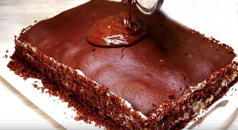 Turnați glazura rezultată peste partea de sus a tortului. Tortul este acum gata și poate fi servit imediat cu ceai, sau puteți să-l puneți în frigider pentru a lăsa crema să se întărească. Pofta buna!