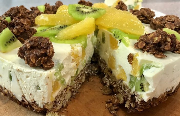 Dacă îți dorești un desert care să îmbine prospețimea fructelor și finețea ciocolatei, acest tort cu portocale, kiwi și brânză este exact ce cauți! Perfect pentru o ocazie specială sau pur și simplu pentru a-ți răsfăța familia, acest desert combină armonios aromele citrice cu textura cremoasă și straturile crocante de cereale. În plus, prepararea sa este o adevărată plăcere, fiind la fel de satisfăcătoare ca rezultatul final.