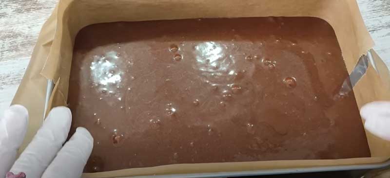 Puneți aluatul într-o tavă de copt de 28 x 18 cm tapetata cu hârtie de copt. Coaceți la 175 de grade Celsius timp de aproximativ 35 de minute fără ventilator. Nu deschideți cuptorul în timpul coacerii.