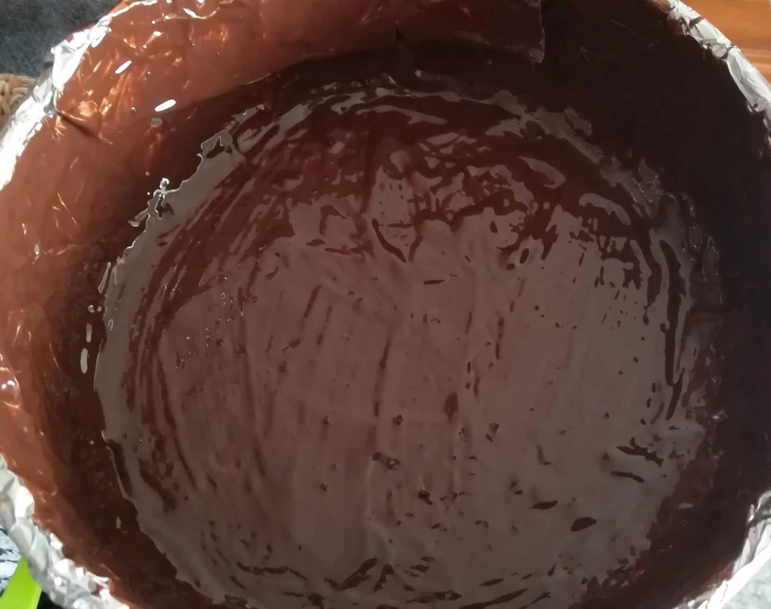 Topim încă un pic de ciocolată și ungem blaturile de napolitană pe o parte, apoi putem pune blatul în tavă. Punem la frigider până pregătim crema.