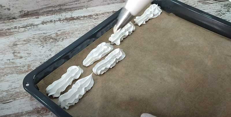 Bezeaua se usucă (se coace) într-un cuptor preîncălzit la o temperatură de 85 grade Celsius, căldură superioară-inferioară fără convecție timp de aproximativ 2-3 ore .