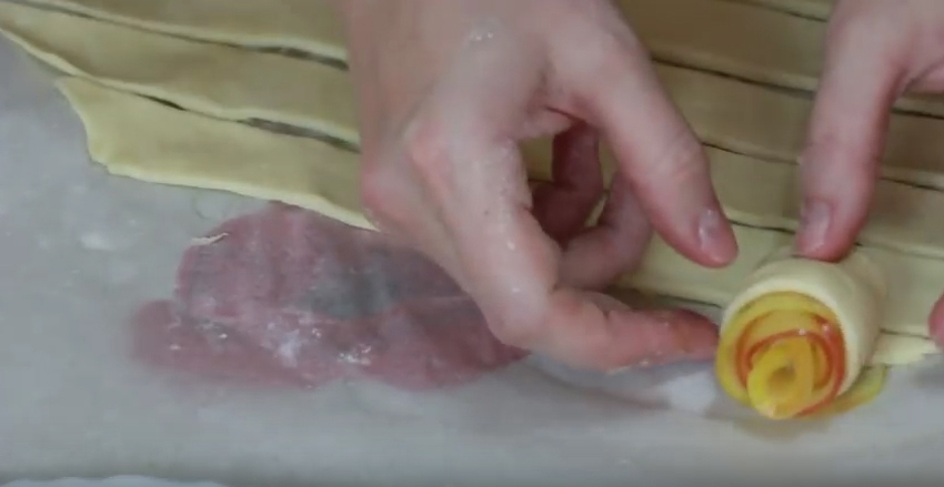 5. Formăm rulouri ce seamănă cu niște trandafiri.