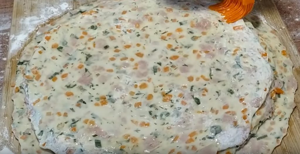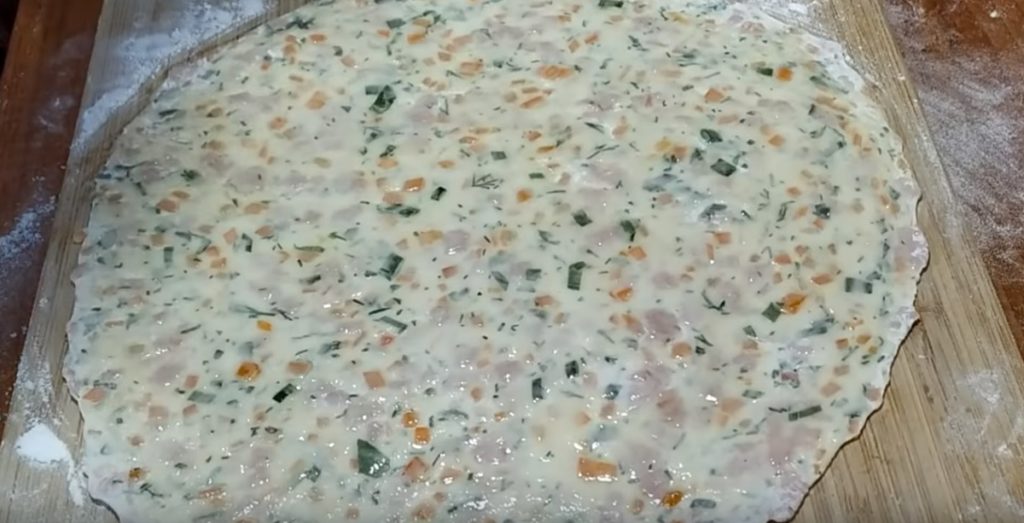 Întindem în formă subțire și sfertul de aluat. o să avem o turtă mare și șase mai mici.