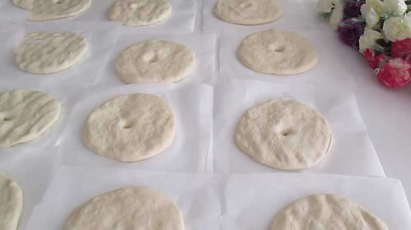 Acoperiți-le cu o cârpă curată și lăsați-le să se odihnească timp de 15 minute. După timp, apăsați pe bile pentru a le intinde usor si faceți o gaură mica în centru, cu degetul.