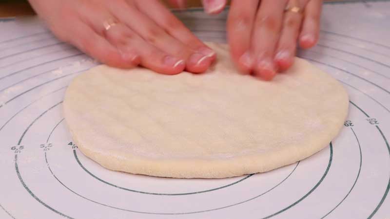 Le întind cu grijă într-o turta subțire cu un sucitor sau le întind cu mâinile. Fii atent, aluatul este subțire și se poate rupe.