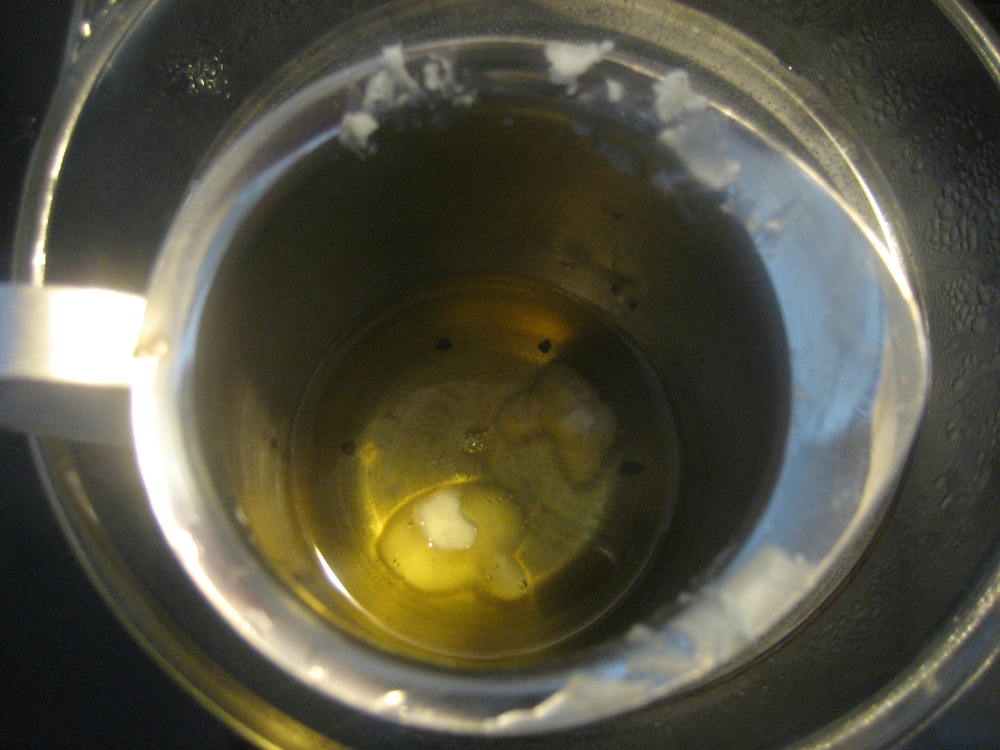 Il lasam deoparte pentru 24 de ore, intr-un loc racoros si uscat. Incalzim apoi amestecul din nou pentru a redeveni lichid si-l strecuram printr-o sita direct in recipient.