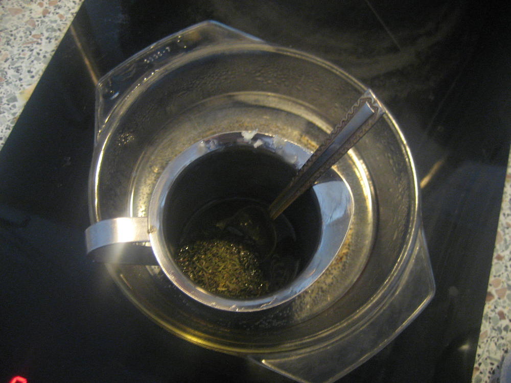 Cand untul se dizolva complet, adaugam cimbru. Amestecam timp de 15-20 de minute si dam vasul deoparte.