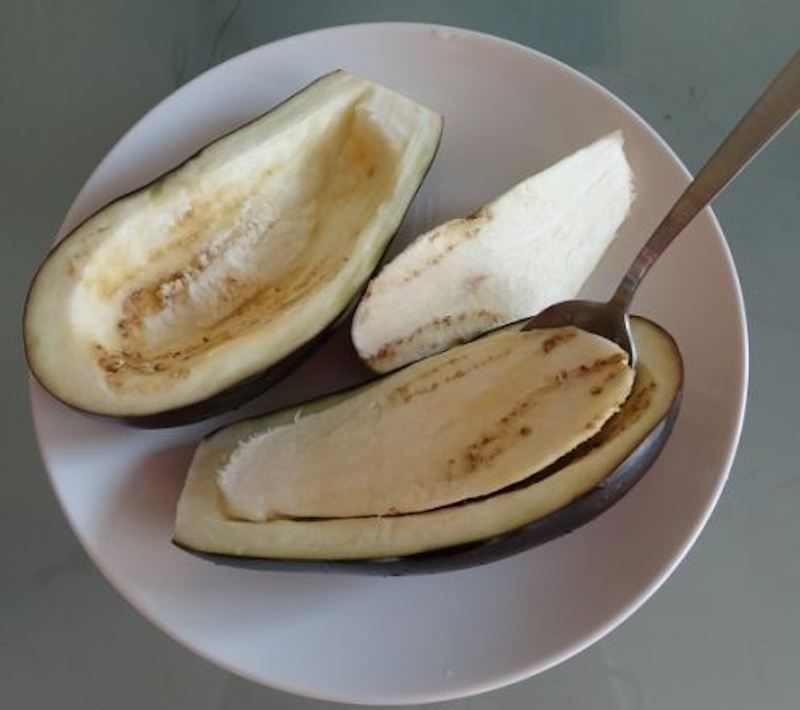 Clatim vinetele in apa. Le uscam cu un prosop de hartie si apoi le scobim cu o lingura, exact ca in imaginea de mai jos.
