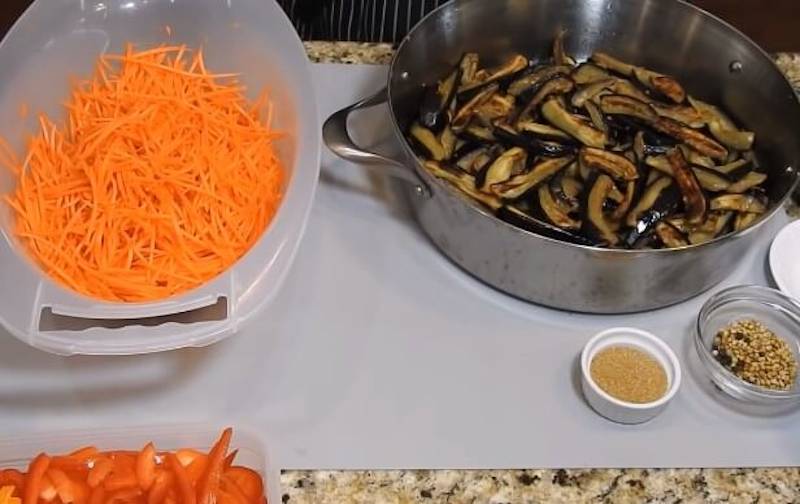 Aceasta este una dintre cele mai simple retete de vinete cu ardei si morcov la borcan pentru iarna. Preparatul rezultatul are un gust foarte bun si poate fi consumat alaturi de o multime de mancaruri gustoase.